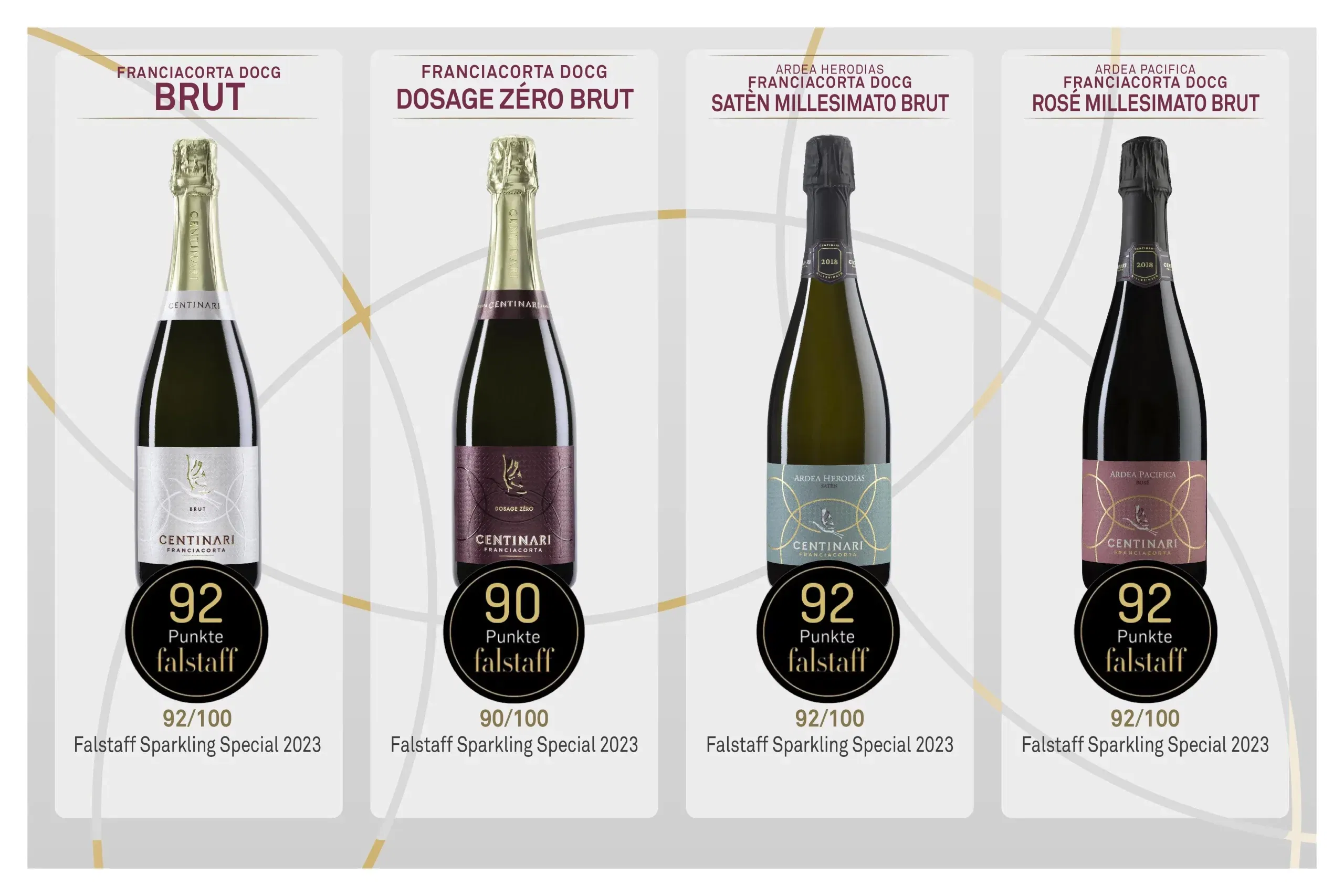 I millesimati Centinari, il Satèn ed il Rosé, hanno ricevuto entrambi 92 punti totali.